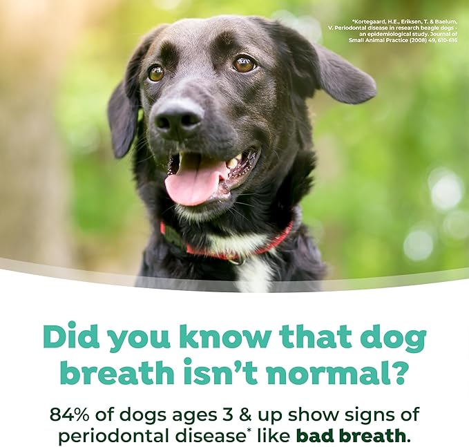 • Happy & Healthy: Dogs with sensitive stomachs or new to Fresh Breath for Dogs should start with 1/2 the recommended dose.