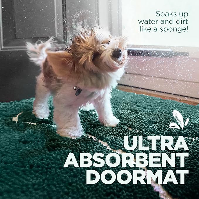 - SUPERABSORBENT MICROFIBER DOOR MAT – Keep muddy paws and wet fur from ruining your floors with this ultra-absorbent chenille dog mat. Designed to soak up 5x more water, snow, and muck than standard rugs, this microfiber noodle doormat is perfect for wet dogs and puppies. Use it as a crate flat insert, towel, kennel bedding, or an entryway mat to keep your home clean and dry in any weather.