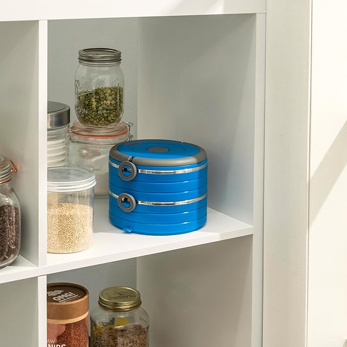 Healthy Human Travel Pet Bento Bowls - Human-Grade Stainless Steel & BPA-Free, Leak-Proof Water & Food Container Set for Dogs & Cats, 3-Pack Interlocking Bowls, Includes Spare Clips & Handle (Blue)