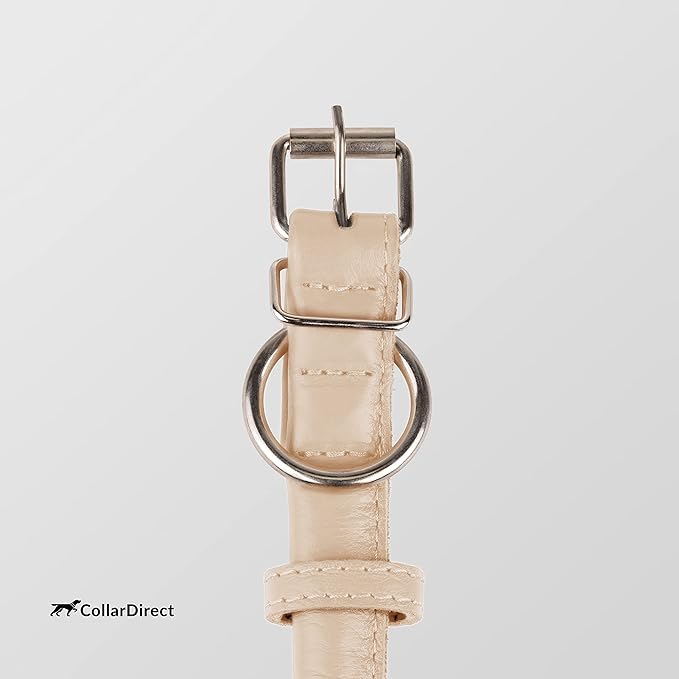 CollarDirect Rolled Leather Dog Collar, Soft Padded Round Puppy Collar, Handmade Genuine Leather Collar Dog Small Large Cat Collars 13 Colors (15-19 Inch, Beige Textured)