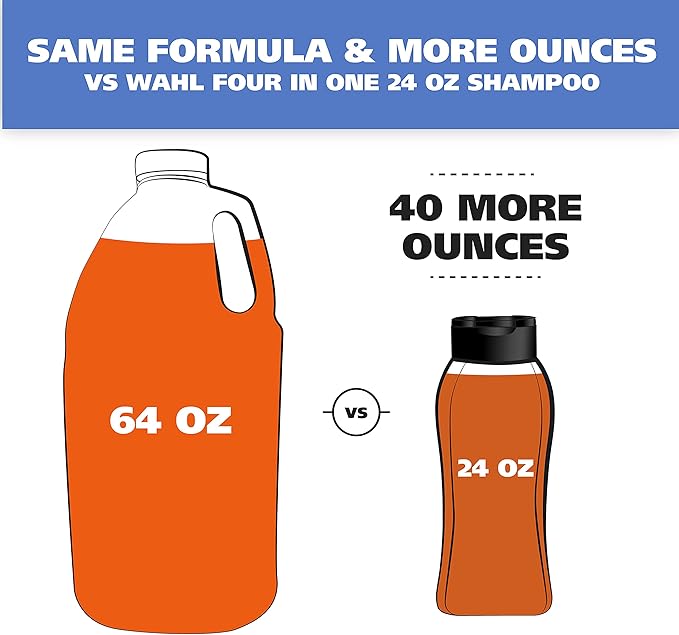 - Less is More - Wahl has a higher concentrate of a coconut derived sodding agent, which means you don’t have to use as much product as other dog shampoos. A little bit of shampoo goes a long way and provides a rich lather that’s easy to rinse off.