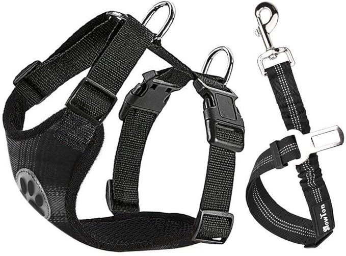 - New Match and Well Made --- Breathable Canvas Chest Harness: it’s made of the double mesh fabric with the soft canvas, attached to four PP material strap, which will absorb sweat and feel breathable when your pet dog wear it. Safety Seat Belt: it’s made from durable nylon strap to protect the dog which is elastic and adjustable for the car vehicle.