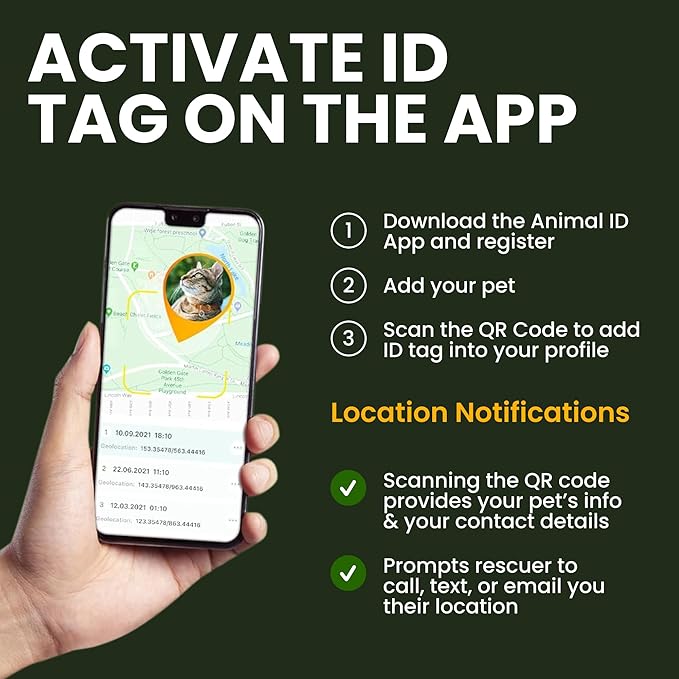 - Small size may fit perfect for kittens and mini dogs. We added a small gift to our collars -QR Id cat tag. To activate the dog tag download App and register your pet there. Scan QR code to add ID tag to your profile. Keep all information in one place with QR pet tag. Anyone who finds your pet can access your pet`s profile and contact you to return it home. You can use the ID tag holder made of eco-friendly flexible and soft liquid silicone to safeguard the pet tag.