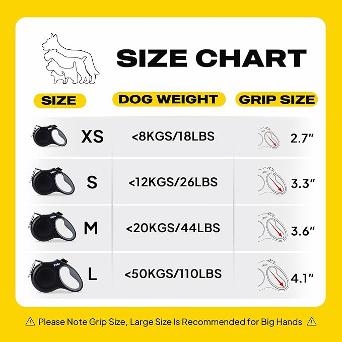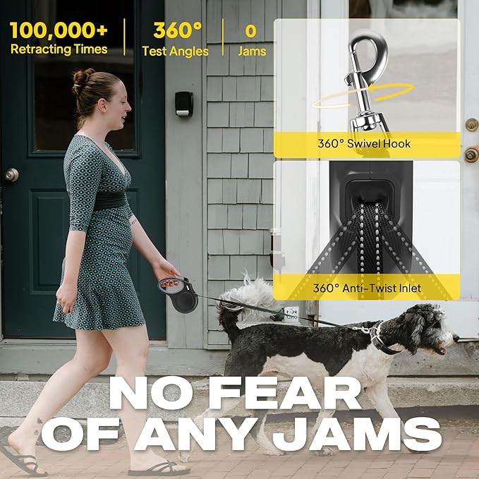 - HEAVY DUTY, DURABLE & STEADY - 16 ft high strength nylon tape with durable rustproof swivel hook and steady impact-resistant ABS material, suitable for large dogs up to 110 lbs. Top durability Internal Coil Spring for Consistent Retraction several years.