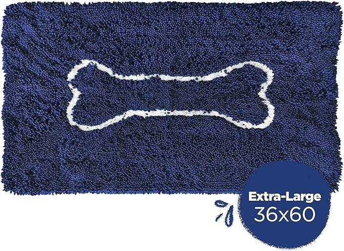 Soggy Doggy Doormat with Bone Design - Ultra Absorbent Microfiber Chenille Wet Dog Mat for Muddy Paws - Non-Slip and Machine Washable (Navy Blue/Oatmeal Bone, Extra-Large 36” x 60”)