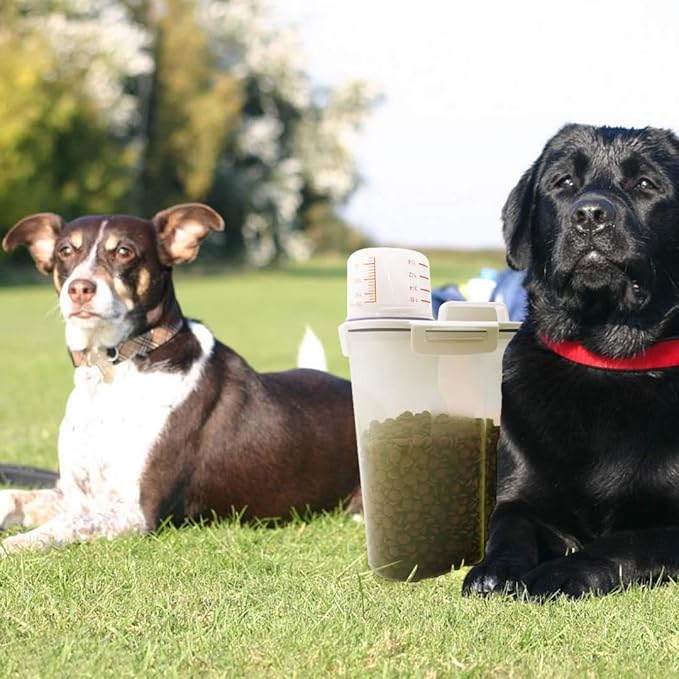 Dog Food Storage Container Small, Cat Food Storage Container Airtight Plastic Dispenser with Graduated Measuring Cup, Pourable Spout and Portable Collapsible Dog Bowl for Pet Food, Birds Seed