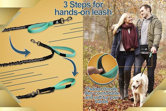 - Perfect Control - Being able to fully control your dog may be crucial, especially when crossing a busy street. The easy grip control handle on the bungee will allow you a firm, yet smooth hold on your dog whenever you need to keep it out of harm's way! This dog leash that goes around your waist is a perfect walking leash for dogs that pull.