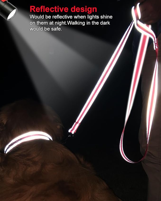 - DOUBLE-SIDED REFLECTIVE: Upgraded double-sided reflective leash features reflective stitching on both sides to improve its visibility and would be reflective when lights shine on it at night. Can keep your doggie safe during evening walks or runs