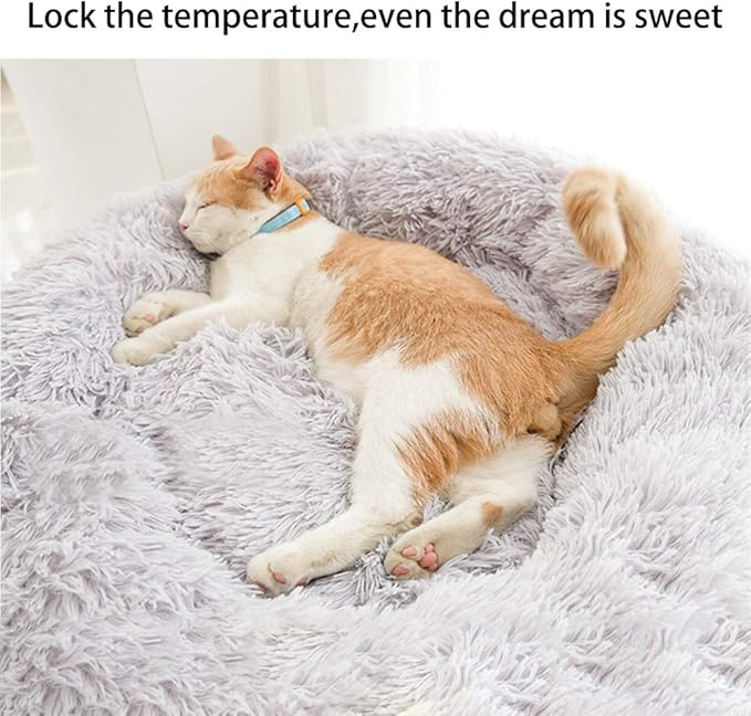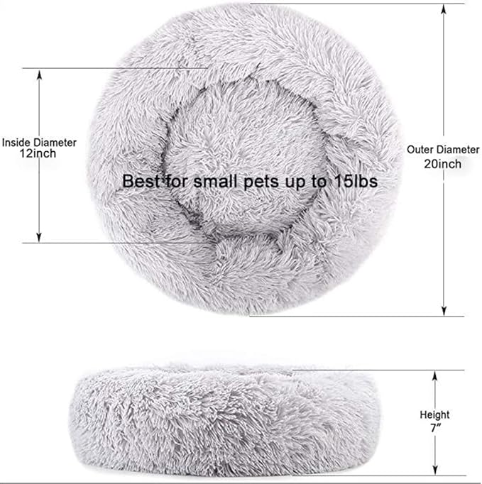 Gavenia Cat Beds for Indoor Cats,20’’x20’’ Washable Donut Bed,Soft Plush Pet Cushion,Waterproof Bottom Fluffy Dog and Cat Calming and Self-Warming Bed for Sleep Improvement,Grey