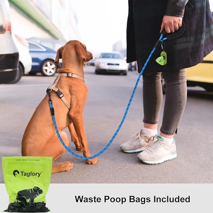 Taglory Rope Dog Leash 4 FT with Comfortable Padded Handle, Highly Reflective Threads Leash for Small Dogs, 3/8 inch, Blue
