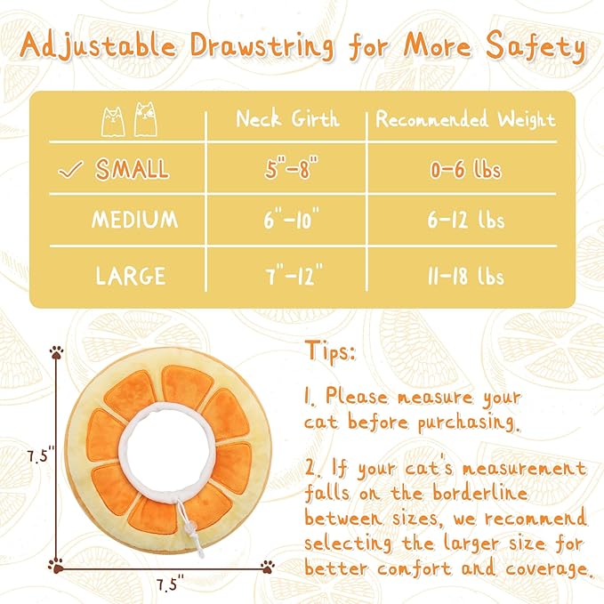 - 【AS AN ADORABLE PILLOW】 More than a cat recovery collar, it’s an adorable decoration for your lovely kitten. It also acts as a soft pillow when the cat lies down. Imagine your cat wearing it and looks like an orange, you both will be in a good mood all day.