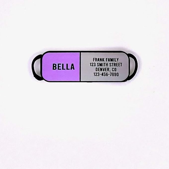 - Customized and Personalized Pet Tags are Deep Engraved, Silicone & Jingle Free - The engraving is cut into the Collar ID Pet tag so it will not rub off - Easy to clean and your engraved dog ID tag stays looking brand new - Tags come as 2 pieces: A silicone plate that slides on to a black elastic base with elastic straps that go over the collar opening and you slide the tag on to the collar using these straps.