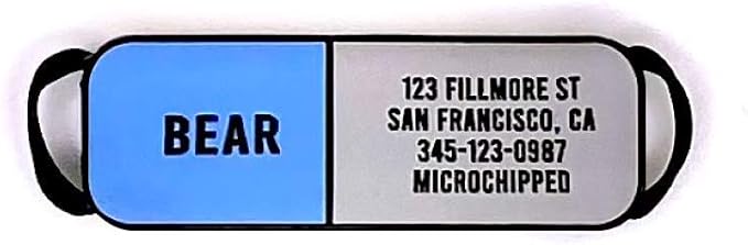 - Customized and Personalized Pet Tags are Deep Engraved, Silicone & Jingle Free - The engraving is cut into the Collar ID Pet tag so it will not rub off - Easy to clean and your engraved dog ID tag stays looking brand new - Tags come as 2 pieces: A silicone plate that slides on to a black elastic base with elastic straps that go over the collar opening and you slide the tag on to the collar using these straps.