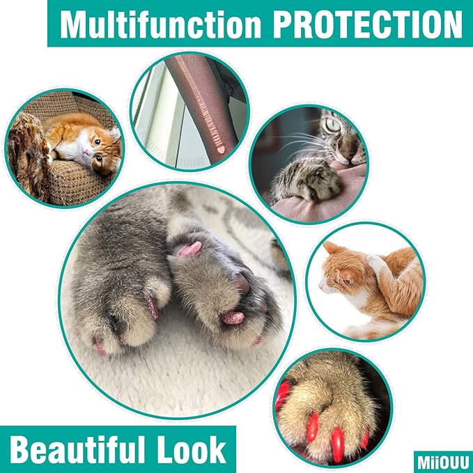 • Safe and Comfortable: MiiOUU Cat Nail Caps are made from premium natural vinyl resin, soft and comfortable to wear. The cat nail caps have passed Europe SGS environmental certification.