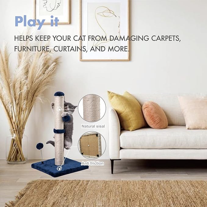 MECOOL Cat Scratching Post Premium Basics Kitten Scratcher Sisal Scratch Posts with Hanging Ball 22 in for Kittens or Smaller Cats, Navy
