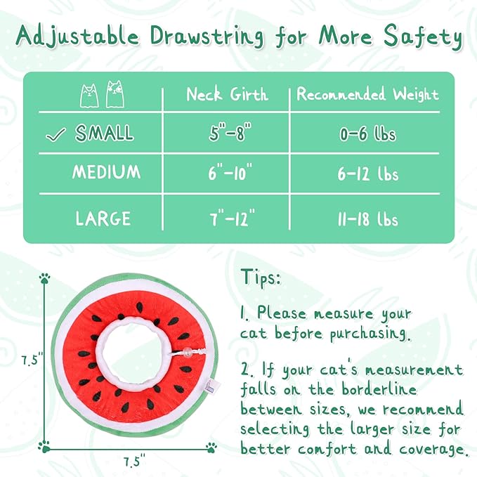 - 【AS AN ADORABLE PILLOW】 More than a cat recovery collar, it’s an adorable decoration for your lovely kitten. It also acts as a soft pillow when the cat lies down. Imagine your cat wearing it and looks like a watermelon, you both will be in a good mood all day.