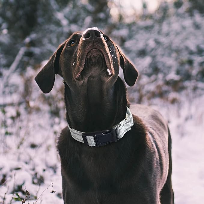 Hikiko Reflective Martingale Dog Collars for Large Dogs with Buckle Nylon Training Walking No Pull Collars, Sliver Gray, L