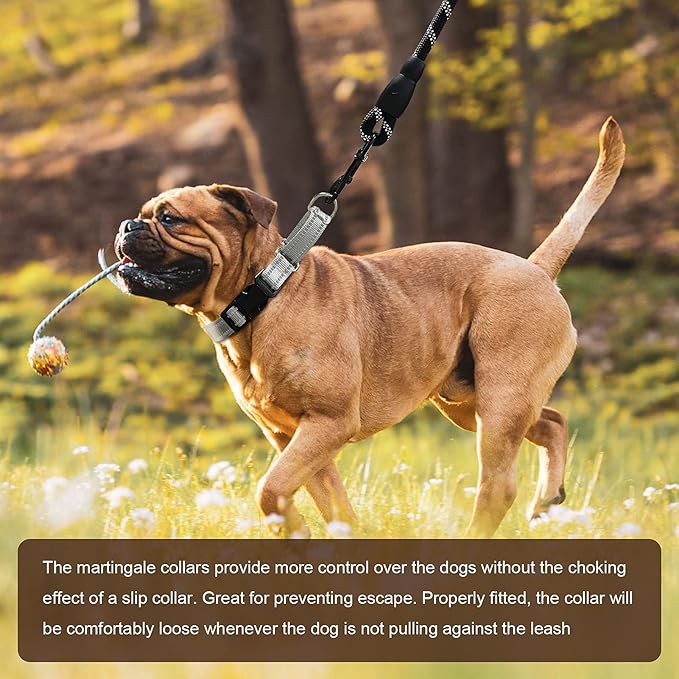 - 【Durability】Soft nylon dog collar and heavy-duty hardware won't easy loose or fray; Strict pulling test conducted before production. Properly fitted, the martingale dog collar will be comfortably loose whenever the dog is not pulling against the leash