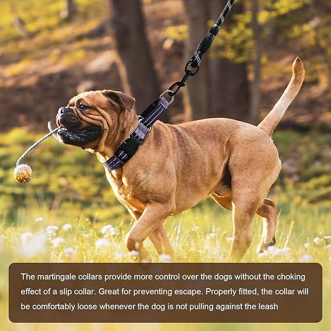 - 【Durability】Soft nylon dog collar and heavy-duty hardware won't easy loose or fray; Strict pulling test conducted before production. Properly fitted, the martingale dog collar will be comfortably loose whenever the dog is not pulling against the leash