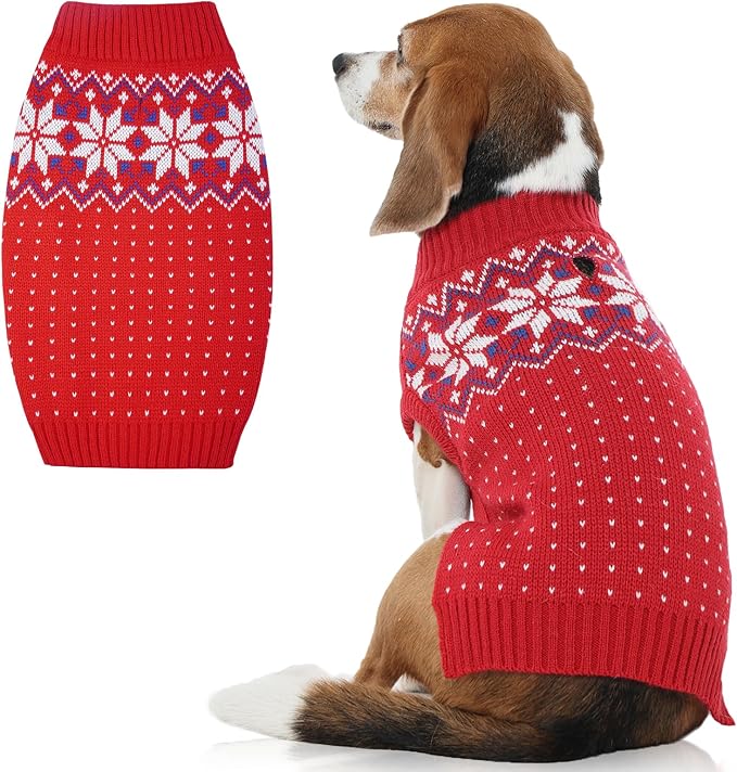 - Classic Snowflake: This is a classic Christmas dog sweater that can be paired with your Christmas jumper to make a parent-child outfit.This New year dog knitwear makes your doggie more charming and eye-catching in the crowd