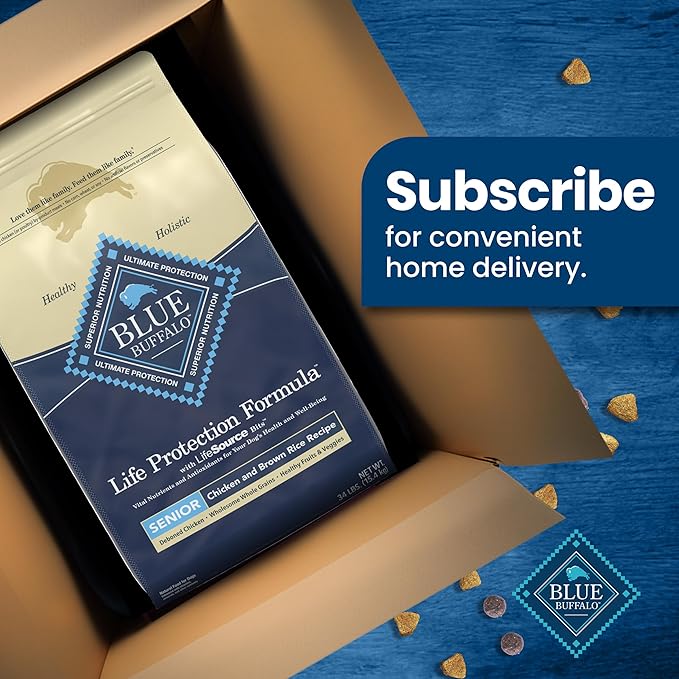- Contains: One (1) 34-lb bag of BLUE Life Protection Formula Natural Senior Dry Dog Food Chicken and Brown Rice Flavor