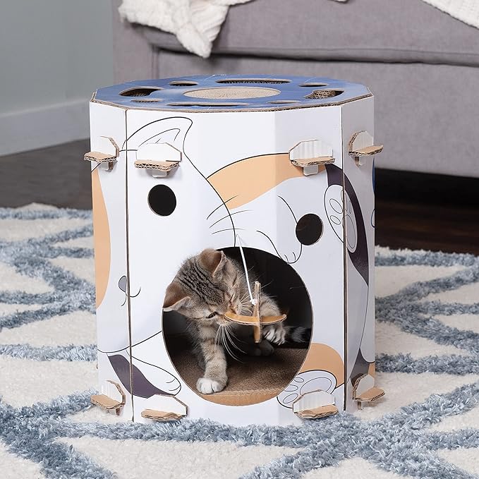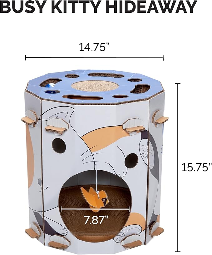 - MEET YOUR CAT'S NEEDS: The enclosed design of the Busy Kitty playhouse creates a cozy private hideaway for your cat to lounge in, play, and meet their scratching needs