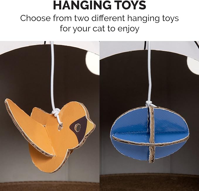 - FUN AND PLAY: Designed with a built-in interactive puzzle box roof featuring attention-grabbing jingle ball toys for fun and engaging play; detachable hanging toys also come included for additional entertainment
