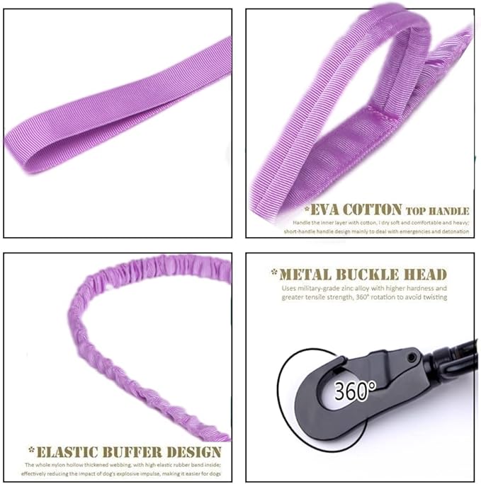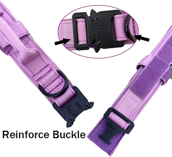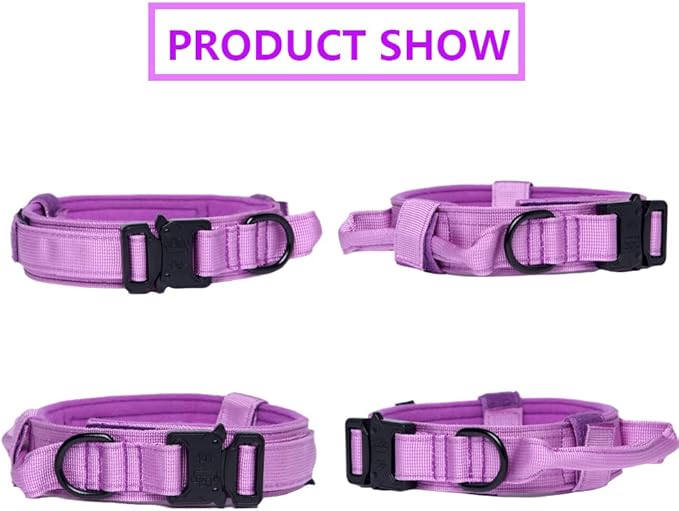 Tactical Dog Collar and Leash Set Tactical Dog Collar with Handle Bungee Leash Adjustable Military Training Nylon Collar Dog Training Collar Leash Set with Control Handleand Metal Buckle(Purple M