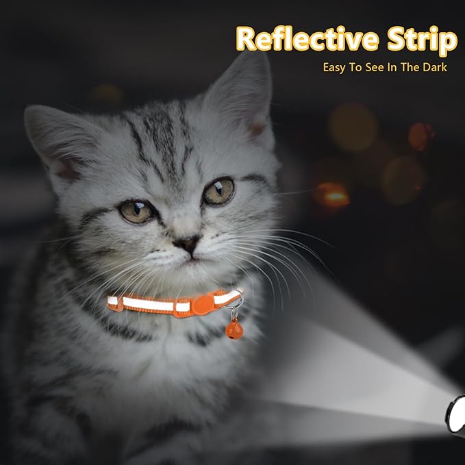 - BREAK-AWAY CLASP: Our cat collar will quick release under pressure if your cat get stuck up in something. It has just enough resistance in the break away part, not breakaway easily. Your cat's body weight would break it, but it will not come off from just scratching at it