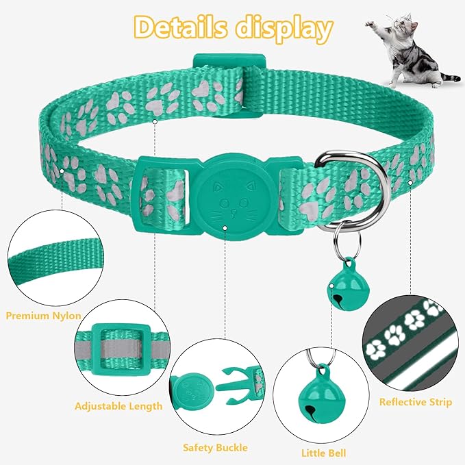 - BREAK-AWAY CLASP: Our cat collar will quick release under pressure if your cat get stuck up in something. It has just enough resistance in the break away part, not breakaway easily. Your cat's body weight would break it, but it will not come off from just scratching at it
