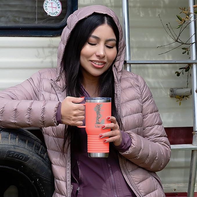 - Personalized just the way you want it! Each travel mug is laser engraved with the image that you see in the photo along with your own name or custom text.