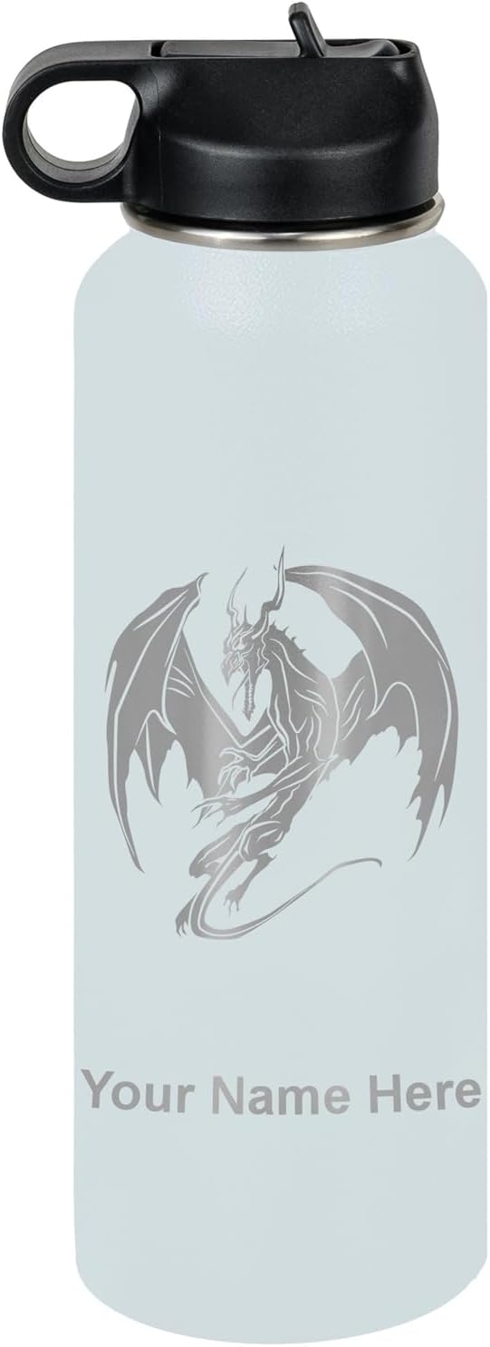 LaserGram Personalized Water Bottle, Dragon, Stainless Steel Double Wall Vacuum Insulated with Flip Top Straw, Custom Engraved Gift (40oz / 1180ml Light Blue)