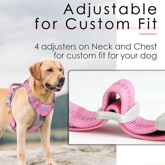 - DOG HARNESS WITH HANDLE: This dog vest harness comes with a wide handle on the back, which allows you to control the dog closely in emergency situations, such as when the dog is trying to pounce on someone, chasing other animals, or crossing the road. The flexible strap of our dog harness can prevent the dog from choking when pulled by humans, making the force evenly distributed.