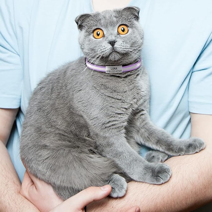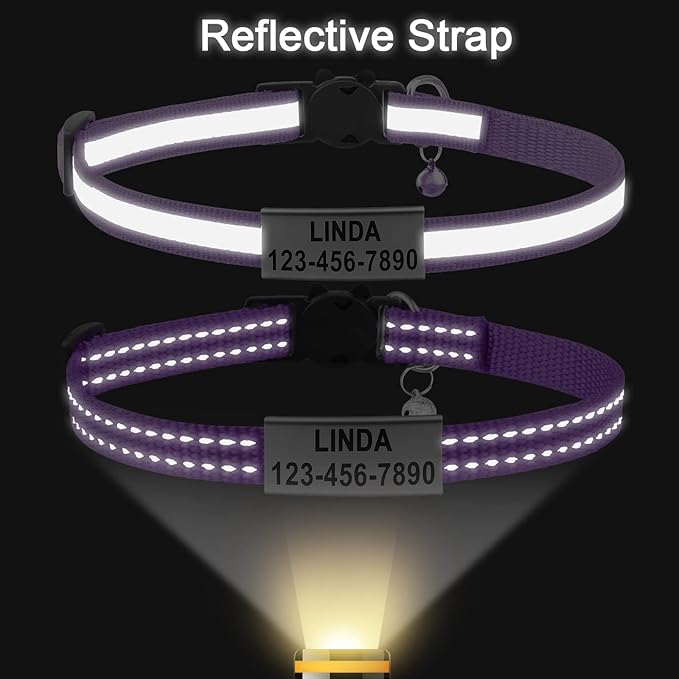 Cat Collar Personalized - Breakaway Reflective Cat Collar with Bell-Custom Cat Collars Engraved with Name and Phone, Adjustable for Cats and Kitten