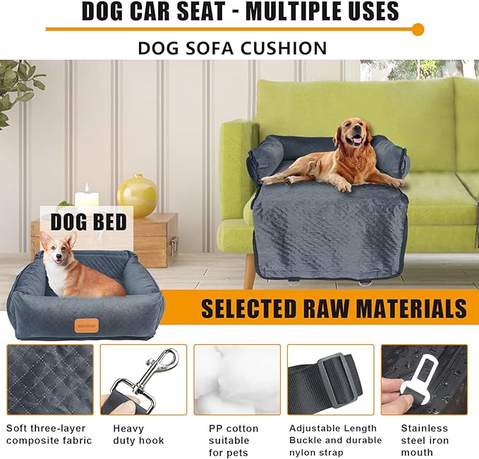 - Multifunctional use:dog car seat on both sides of the storage bag, you can store pet supplies,you can also remove the seat belt into the side pocket,fold the backrest as a dog bed use;can also be used on the sofa to protect the sofa from damage by the dog.
