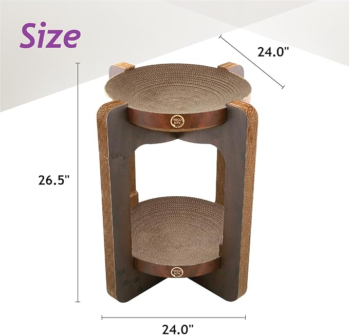 Necoichi Cat Scratcher Tower for Indoor Cats - Cat Scratching Post Lounger with Reversible Usability and Extra Comfort for Lounge, Cardboard Bed Couch / (XL, Dark Cherry)