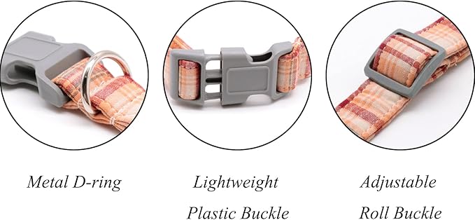- ππππππππ ππππππππ - The products are made of cotton fabric which is thick and durable. The buckles are made of plastic. This buckle is easy to put on and take off. Metal D-ring can attach the leash and ID tag.