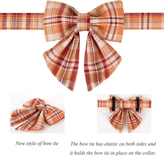 Lionet Paws Fall Dog Collar with Bowtie, Orange Dog Collar with Plastic Buckle for Puppy Dog Cat Halloween Thanksgiving Day Gift, XXS, 7-11 in