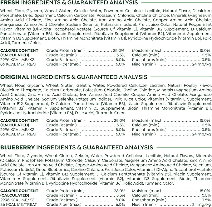 • Treat your dog fantastically with three GREENIES Treats varieties: Original Flavor, Fresh Flavor and Blueberry Flavor