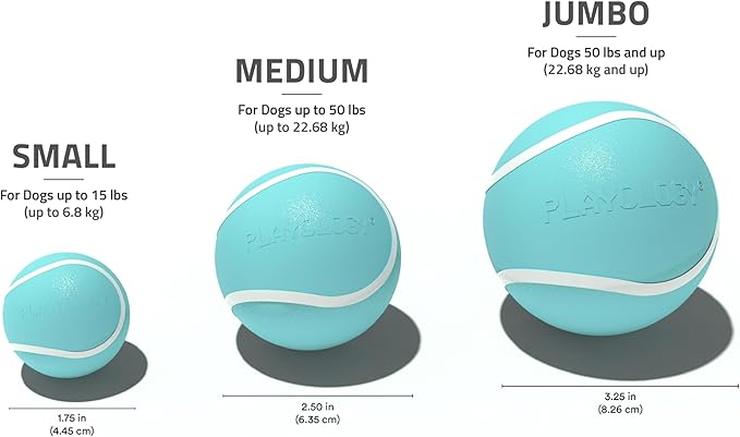 - Playology's Squeaky Chew Ball: This Medium squeaky dog ball features a fun squeak to catch your dog's attention and keep them entertained 7x longer than unscented toys. This rubber dog ball is ideal for medium breeds (up to 50lbs). Durable enough to withstand play indoors and outdoors, this medium dog ball is an essential item to entertain your K9 companion.