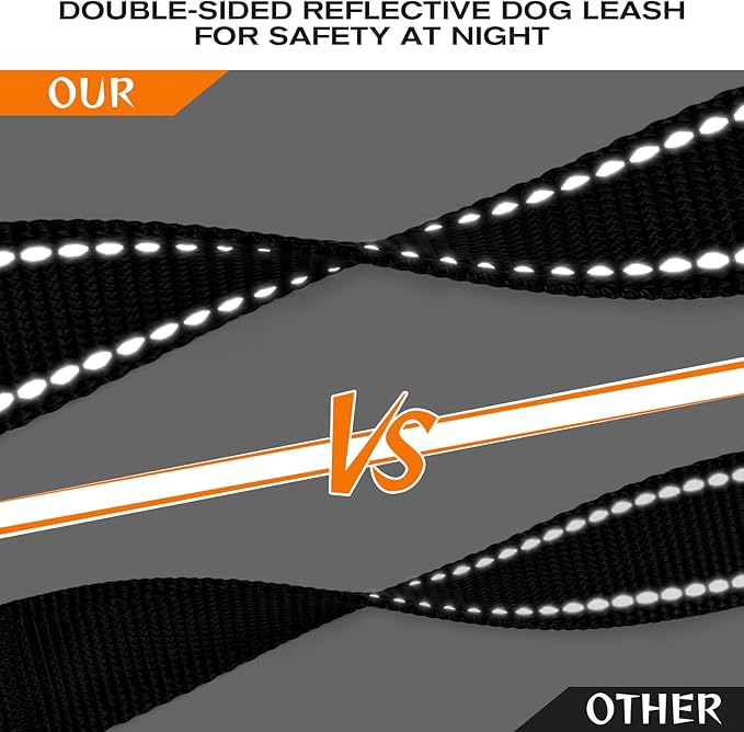 - Double-Sided Reflective for Night Safety: The upgraded double-sided reflective leash has reflective stitching on both sides, which is much safer than the dog leash without reflective threading and a single-sided reflective leash. Luminous reflective threading keeps you and your dog safe and visible at night