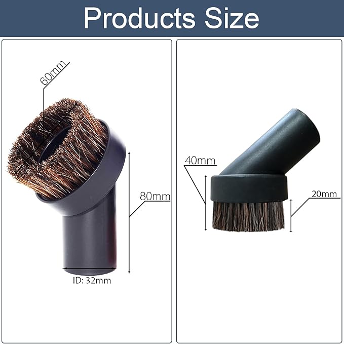 - -Package includes: you will receive 2 pieces round dust brushes 25mm horsehair vacuum attachment plus a universal 1.25'' vacuum hose adapter ( inner diameter from 1.1'' to 1.33'')
