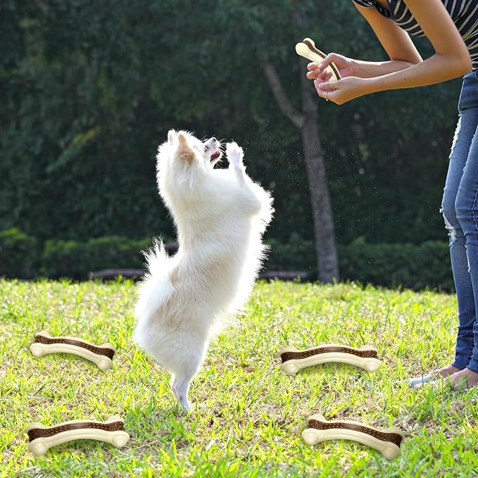 - Bone Shape Design: the realistic bone shape makes your pet easy to recognize, establishes a positive connection with the dog toy, and reduces their anxiety and boredom; Interesting and curved design makes it easy for dogs to hold and chew; These toys are also infused with beef flavoring, you can put pumpkin puree, and mashed potatoes on the toy as well to make them appealing to your dog