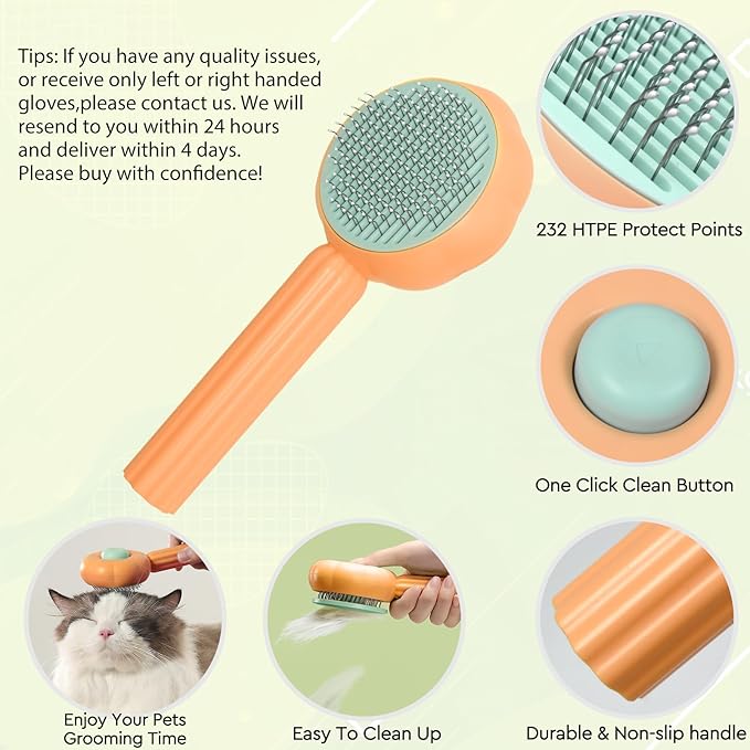 - One click Cleaning Button and Non slip Handle:You just have to Simply click the button,and the pet hair will be pushed out of the brush;The non slip rubber and ergonomic handle includes a silicone, slip resistant grip that is comfortable to use;It is more convenient and efficient to use.