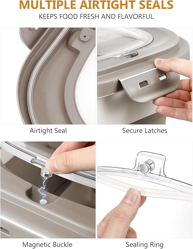 - Say Goodbye to Pesky Pests:The multiple airtight seals and secure locking lids offers excellent sealing ensures your pet's food stays fresh longer, free from moisture and pests.