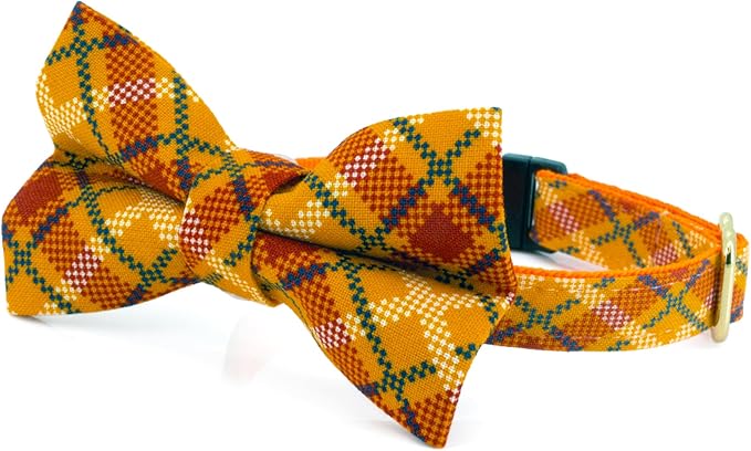 Ultra Joys Cat Collar with Bells - Breakaway for Cats, Kitten Collar - Boy & Girl Cat Collars - Orange Plaid Large