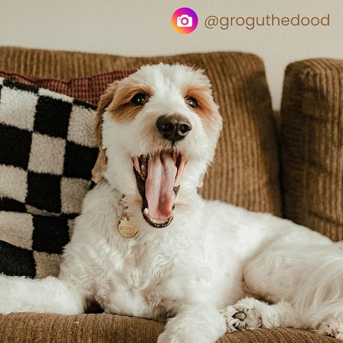 - MODERN DESIGN – We design simple and elegant tags that will age well with your pet and match well with any style! They come with two solid brass rings so you can attach them in a way that works for you, and allows you to keep the tag facing forward.
