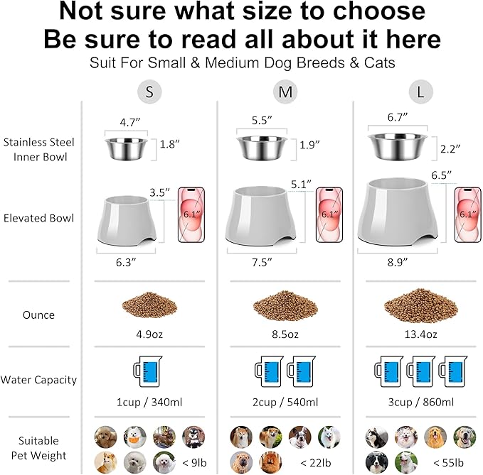 - REDUCE NECK AND JOINT BURDEN:elevated dog bowls provides a comfortable feeding height and helps to reduce the neck burden for older dogs, dogs with muscle or joint problems, providing our pets with easy eating and comfortable licking conditions