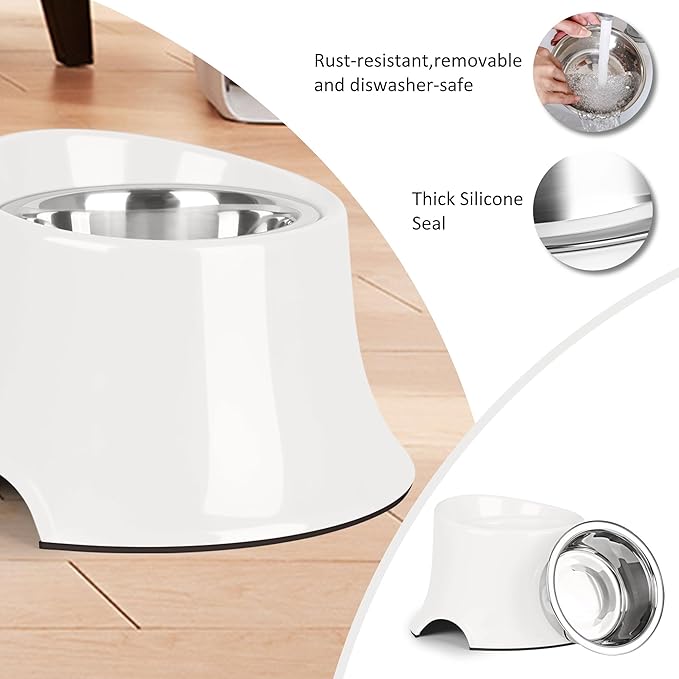 Tilted Elevated Dog Bowls Non-Slip & Non-Spill Pet Feeder with Elevated Detachable Melamine Stand, High Capacity Tilted Dog Bowl for Medium Small Size Dogs M/2 Cup White