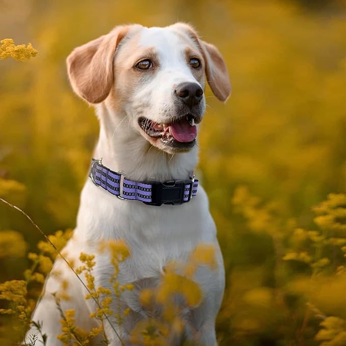 Hikiko Martingale Dog Collars Reflective Nylon Dog Collar with Quick Release Buckle Adjustable Training No Slip Dog Collar (Large, Lavender)